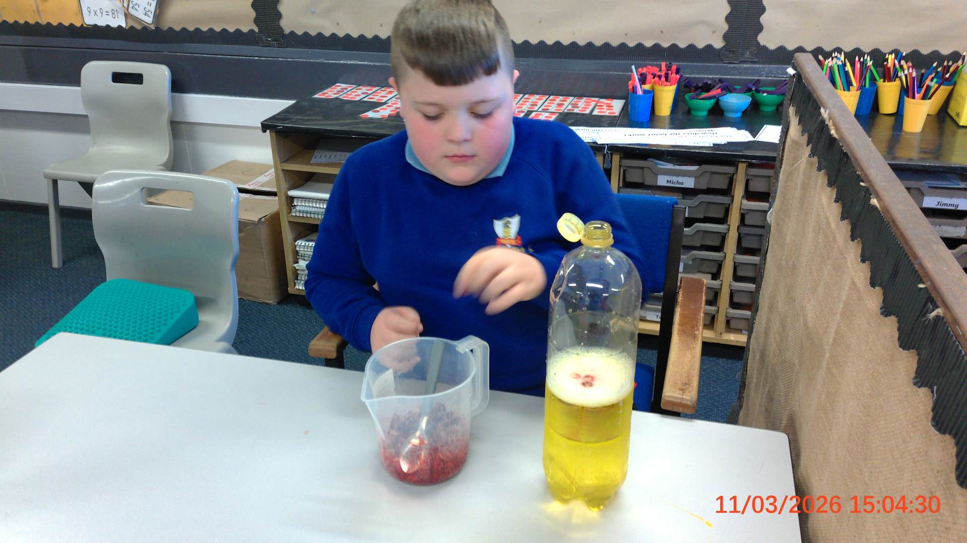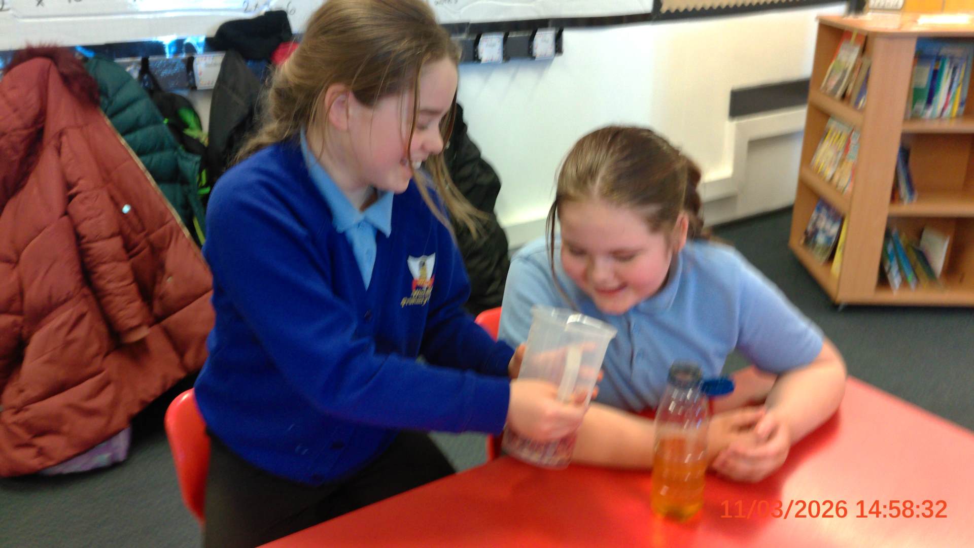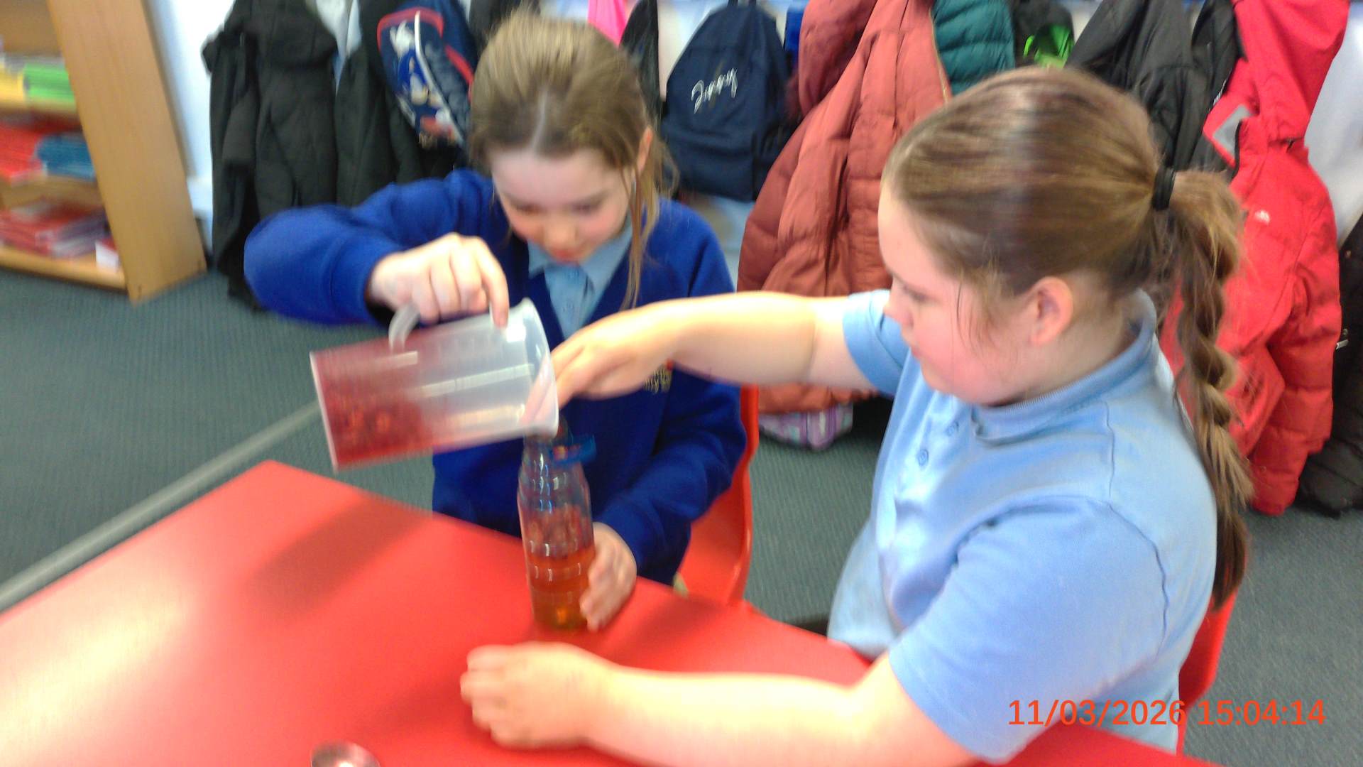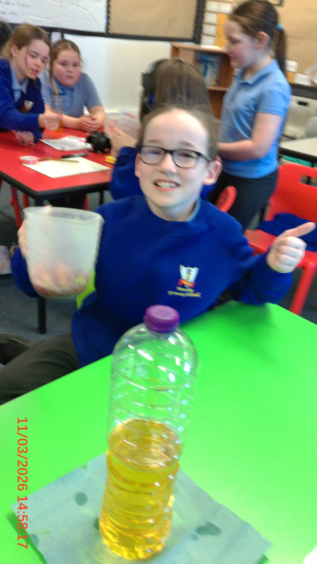 They used everyday household items to make a scientific model of what blood consists of.
